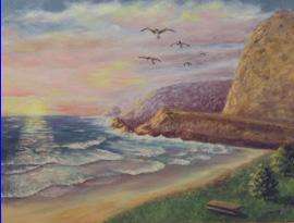 When Grace was 15, living in Paso Robles, California, a neighbor started teaching her to paint. Her long life that followed was filled with art of many types. She did oil painting, ceramic statues, cloth pictures which were her own unique creation, pictures created from bits of shell, rock, twigs, etc, a yard and patio filled with sculpture, painting, fairy tail castles and desert landscapes.